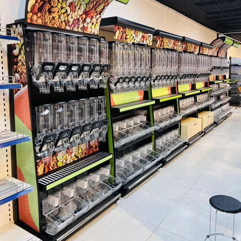 Distributore di cibo secco per caramelle alla rinfusa in plastica per supermercato contenitore per cereali a gravità