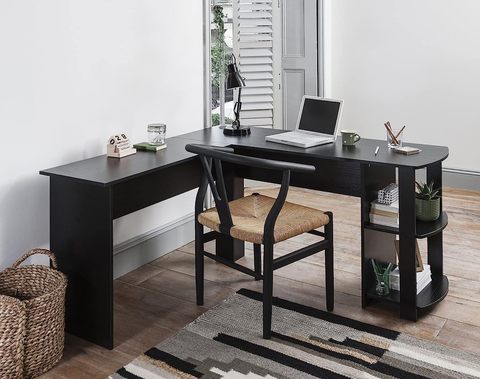 Escritorio de ordenador con estantería, escritorio de estudio de madera, mesas de ordenador modernas con cajón para oficina en casa